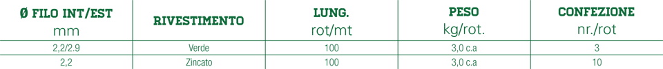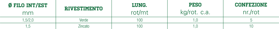 Filo di legatura zincato e plasticato, impiegato per il fissaggio della rete ai pali e ad ai fili di tensione.