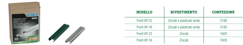 Pinza e punti, Consente di velocizzare la posa in opera delle reti in rotolo. I punti consentono un rapido fissaggio dei fili di tensione e legatura alla rete.