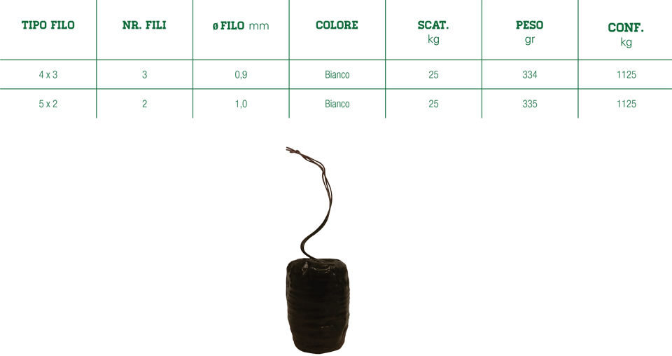 Disponibile nella versione a 2 o 3 fili, venduto in scatole da 25 kg., tenero e malleabile grazie al trattamento di ricottura che subisce, viene impiegato principalmente nell’edilizia per legare elementi di acciaio delle armature del cemento. La particolare conformazione elicoidale della bobina, permette i sfilare i due capi dall’interno fino al totale srotolamento del filo, evitando sprechi o scarti.