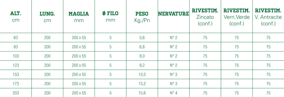Recinzione in pannello elettrosaldato ondulato zincato e verniciato a polveri, composti da resistenti tondini in filo d’acciaio zincato Ø 5,0 mm che, formano maglie da 200 x 50 mm e particolari nervature orizzontali di rinforzo, che garantiscono un’elevata rigidità e robustezza alla recinzione.