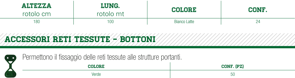 Rete schermante tessuta a maglia fitta, frangivista, fornita in rotoli, colore bianco latte con asole alle cimose; Particolarmente impiegata in edilizia per la copertura dei ponteggi.
