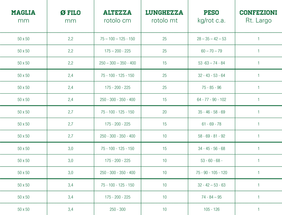 È la rete a maglia sciolta zincata prodotta con filo cotto forte zincatura o in filo cotto a zincatura commerciale. Viene prodotta in svariate altezze e in svariati diametri di filo.